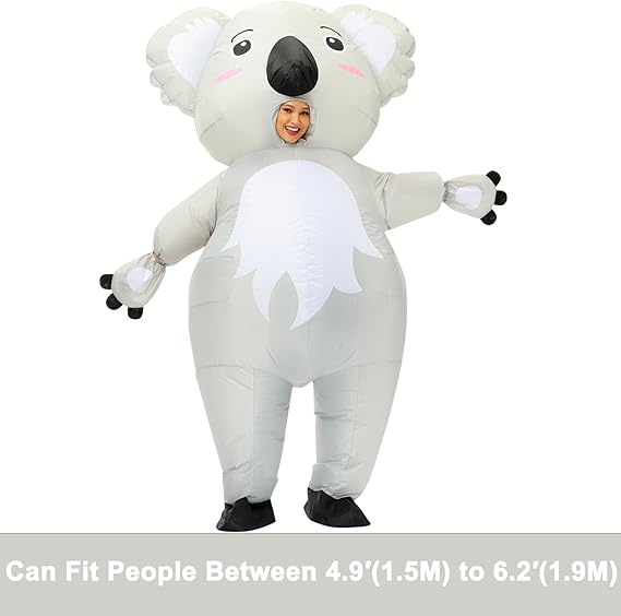 Dairy Koala novel and funcy inflatable suit design,Koalaboy costume adult inflatable suitable for indoor and outdoors, company celebration or annual party, weddings, halloween,blow up Koala costume good Gift for new year,christmas, festivals, birthday party, bachelor party, cosplay party etc.Koala costume adult woman great for men and womens costume bodysuits inflatable animal costume