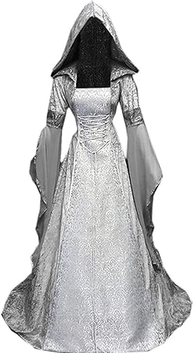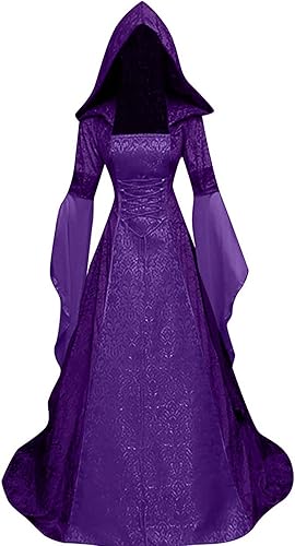 【High Quality Material】 This elegant medieval dress costume is made of high quality Rayon and Polyester, soft, lightweight and comfy for skin. Excellent workmanship, each adult halloween costume is carefully hand-made by experienced dressmakers. And makes you more attractive and charming. With this such womens medieval victorian hooded cloak dress, you will enjoy a wonderful night! A must one for Halloween party!