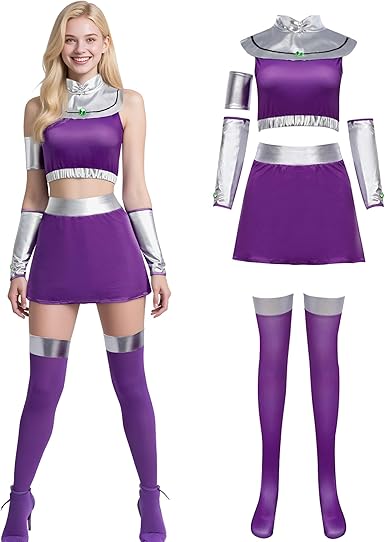 Cosplay Full Set Costume: Includes 1 crop top, 1 short skirt, 1 arm sleeve, 1 shoulder armor, 1 pair of gauntlet and 1 pair of thigh-high socks. Slip into this costume and instantly transform into your favorite character!